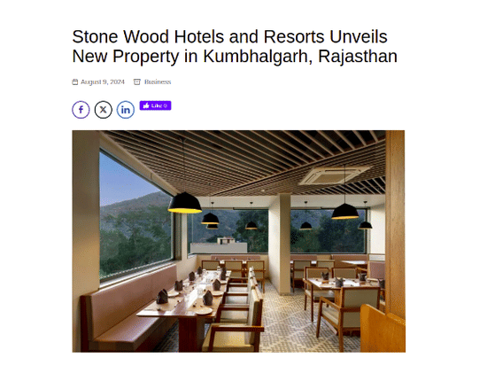 Stone Wood Hotels & Resorts Unveils New Property in Kumbhalgarh, Rajasthan